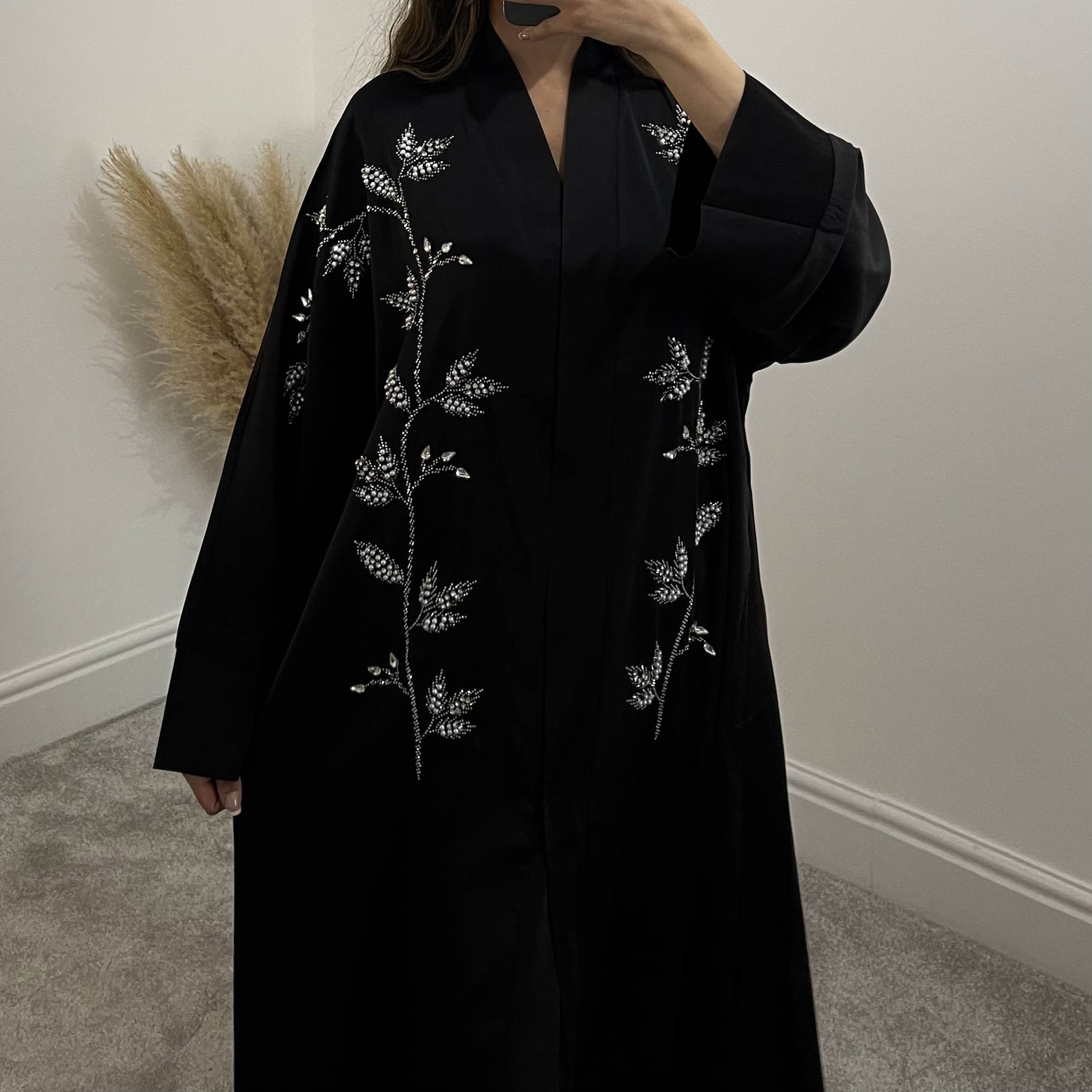 • Diamanté Leaf design Abaya